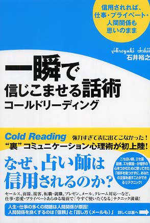 今回ご紹介する石井裕之氏の著書『一瞬で信じこませる話術コールドリーディング』は、占い師やエセ霊能者が使う「禁断のテクニック」を日本で初めて一般向けに解禁した、伝説的な一冊です。